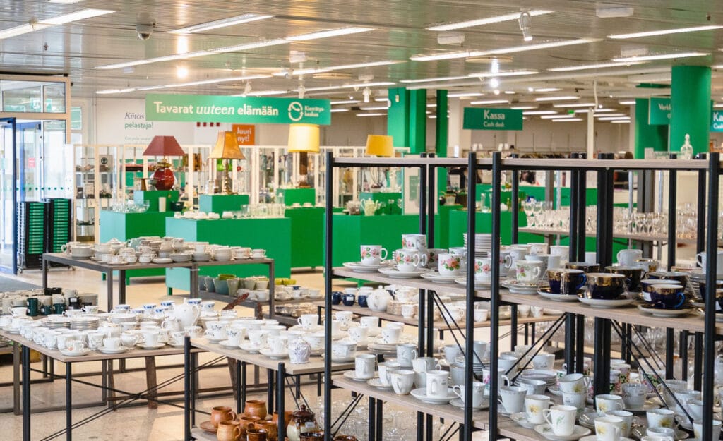 Kierrätyskeskus Tammisto Suurmyymälä Pitää sisällään pien-, keskikoisen ja suurmyymälöiden valikoiman Osoite Tammiston kauppatie 11, Vantaa, Finland Avaa karttasovelluksessa Avoinna ma–pe 9–21 la–su 10–18 Poikkeavat aukiolot Avoinna tänään Aukioloaikoja ladataan… {{ openinghours.opening }} {{ openinghours.closing }} Suljettu. Avoinna {{ openinghours.next.date_formatted }} {{ openinghours.next.opening }} {{ openinghours.next.closing }} – Aukioloajat ma 09:0021:00 ti 09:0021:00 ke 09:0021:00 to 09:0021:00 pe 09:0021:00 la 10:0018:00 su 10:0018:00 Poikkeusaukioloajat 6.12.2025 Suljettu Katso kaikki 23.12.2025 09:00 20:00 24.12.2025 Suljettu 25.12.2025 Suljettu 26.12.2025 Suljettu 31.12.2025 09:00 18:00 1.1.2026 Suljettu 6.1.2026 10:00 18:00 3.4.2026 10:00 18:00 5.4.2026 Suljettu 6.4.2026 10:00 18:00 30.4.2026 09:00 18:00 1.5.2026 Suljettu 10.5.2026 Suljettu Yhteydet B-vyöhyke (Tammimäentie V5004: bussit 561 & 614. Tammistontie V5001: bussit 561 & 617.) Reittiopas Esteettömyys Myymälä on yhdessä kerroksessa. Pääovesta vasemmalla on loiva ramppi, ja parin sentin kynnys katukivetyksessä. Asiakas-wc. Tiedustelut 040 034 9426 Kierrätyskeskus Tammisto loksauttaa leuat Vantaan Tammiston suurmyymälästä löydät saman katon alta huonekalukaupan, kirjakaupan, lelukaupan, vaatekaupan, kenkäkaupan, askartelukaupan, sisustuskaupan, astiakaupan… Siis todennäköisesti kaiken mitä tarvitset, ja ehkä vähän enemmänkin!Kun tulet Tammistoon tekemään löytöjä, voit samalla lahjoittaa itsellesi tarpeettomia tavaroita huonekaluista nappeihin. Lahjoita tavaraa Tammistoon Voit lahjoittaa Tammistoon käyttökelpoisia, ehjiä ja puhtaita huonekaluja, puhtaita huonekaluja, vaatteita, mattoja, kodin käyttötavaraa, harrastusvälineitä, lasten tarvikkeita, kirjoja, levyjä, kenkiä, tekstiilejä, sekä askarteluun sopivia materiaaleja. Otamme vastaan myös kaikenkuntoisia isoja ja pieniä sähkö- ja elektroniikkalaitteita sekä polkupyöriä.Tammistossa pienet lahjoituspussukat voi jättää myymälän etuovilta löytyvään lahjoituspisteeseen. Suuret tavaraerät sekä huonekalut lahjoitetaan puolestaan lahjoituspalvelupisteeseen, joka löytyy ulkoa myymälän takaa. Lahjoituspalvelupisteelle ajetaan myymälärakennusta kiertäen, opasteita seuraten. Tässä reittiohjeet – katso myös kartta! Aja myymälän sisäänkäynnin ohi, käänny rakennuksen kulmasta vasemmalle Aja rakennuksen seinustan viertä päätyyn asti, käänny kulmasta vasemmalle Saavut lahjoituspalvelupisteelle! Kun olet valmis jatkamaan matkaa, aja suoraan eteenpäin kohti Tammiston kauppatietä Voit suunnata lahjoittamisen jälkeen shoppailemaan ajamalla lahjoituspalvelupisteeltä suoraan eteenpäin ja kääntymällä jälleen kahdesta kulmasta vasemmalle, jolloin saavutkin jo myymäläasiakkaiden parkkipaikoille. Paljon lahjoitettavaa tavaraa mutta ei autoa? Tilaa vaivaton noutopalvelu! Tuo lahjoitus Kierrätyskeskukseen Tammiston valikoima – osta ja lahjoita! Kierrätyskeskus Tammiston valtaisa, käytännöllinen, inspiroiva ja ihastuttava vakiovalikoima yllättää joka kerta. Arjen ja juhlan ostosten lisäksi voit hankkia myymälästä Kierrätyskeskuksen lahjakortin haluamallesi summalle, sekä tehdä täysin maksuttomia löytöjä ilmaisosastolla! Kaikkia vakiovalikoiman tuoteryhmien tavaroita voit myös lahjoittaa Tammiston myymälään, sesongista riippumatta. Alla olevista linkeistä pääset tutustumaan tuoteryhmiin ja lukemaan lisää niiden lahjoittamisesta. Isot huonekalut Suuret ja pienet huonekalut, kuten nojatuolit, sohvat, lipastot, pöydät ja tuolit sekä matot. Koti & asuminen Astioita, kodintekstiilejä, sisustustavaraa, leluja. Vaatteet & asusteet Sesongin vaatteita ja asusteita aikuisille ja lapsille, monipuolisesti päällepuettavaa arkeen ja juhlaan. Kirjat & viihde Runsas valikoima kirjoja mm. suomeksi, ruotsiksi, englanniksi, lisäksi musiikkia, leffoja ja pelejä. Sähkö & elektroniikka Korjatut, huolletut ja takuulla varustetut sähkölaitteet ja kodinelektroniikka. Polkupyörät Pyöräilykauden ajan valikoimassa korjattuja fillareita kuukauden takuulla. Remontointitarvikkeet Pieni- ja suurikokoiset remontointi- ja rakennustarvikkeet. Käsityö & askartelu Ekologiset ja luovuutta ruokkivat tarvikkeet sekä materiaalit kaikenlaiseen askarteluun ja käsitöihin. Urheilu & harrastukset Laaja valikoima luistimia, suksia, kuntoiluvälineitä, mailoja sekä muita harrastus- ja urheiluvälineitä. The Most Wanted TMW on kuratoitu kokoelma laadukkaita ja trendikkäitä secondhand-vaatteita, joiden elinkaarta on tarvittaessa jatkettu pienet viat huoltamalla. Ilmaisosasto Tervetuloa täysin ilmaiseen aarreaittaan! Ota tarvitsemasi mutta jätä tavaraa muillekin. Lahjakortti Vihdoinkin täydellinen lahja! Hanki Kierrätyskeskuksen lahjakortti haluamallasi summalla. Palvelut Ekologisten ja edullisten ostosten lisäksi löydät Tammiston suurmyymälästä erilaisia arkea ilahduttavia palveluita. Lahjoittaminen Lahjoita myymälään ehjää, puhdasta ja käyttökelpoista tavaraa huonekaluista nappeihin, sekä kaikenkuntoisia sähkö- ja elektroniikkalaitteita ja polkupyöriä osineen. Katso mitä voit lahjoittaa Kotiinkuljetus Voit varata ostoksillesi kotiinkuljetuksen kaupanteon yhteydessä. Lue lisää kotiinkuljetuksesta Verkkokaupan noutopiste Nouda verkkokauppaostoksesi maksutta tästä myymälästä! Siirry verkkokauppaan Tietoturvalokerikko – tulossa pian! Tietoturvalokerikko on tulossa pian. Sitä odotellessa voit lahjoittaa läppäreitä ja muuta pienelektroniikkaa myymälän lahjoituspalvelupisteisiin. Myymälävierailu Tule vierailulle myymälään! Opit kiertotaloudesta näppärien valmismateriaalien avulla. Lue lisää myymälävierailuista