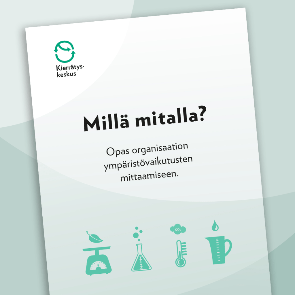 Kierrätyskeskuksen Millä mitalla -opas kertoo organisaation ympäristövaikutusten mittaamisen menetelmistä. Sanastomainen opas käy läpi negatiivisten ja positiivisten ympäristövaikutusten seuraamiseen soveltuvat yleisimmät mittarit ja esittelee niitä tapausesimerkkien avulla.